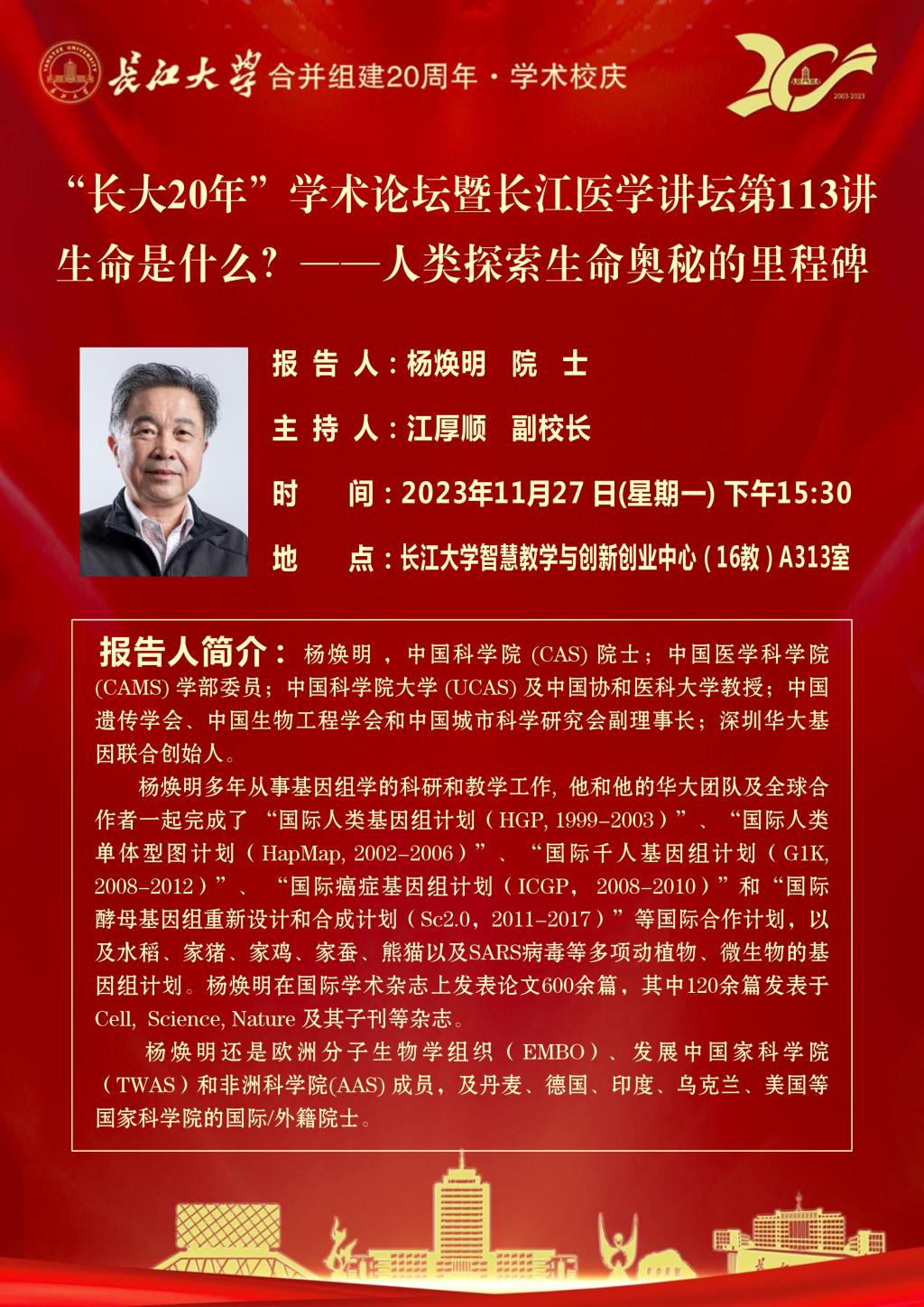 “长大20年”学术论坛暨长江医学讲坛第113讲生命是什么?一一人类探索生命奥秘的里程碑