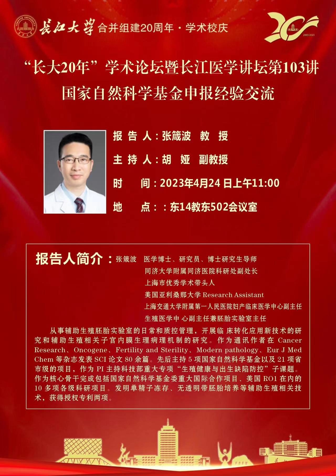 长江医学讲坛(第103讲):国家自然科学基金申报经验交流