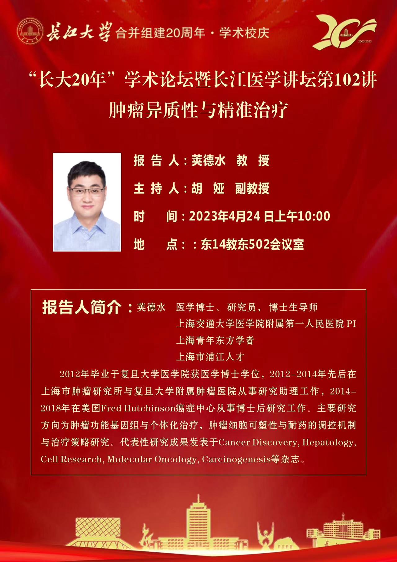 长江医学讲坛(第102讲):肿瘤异质性与精准治疗