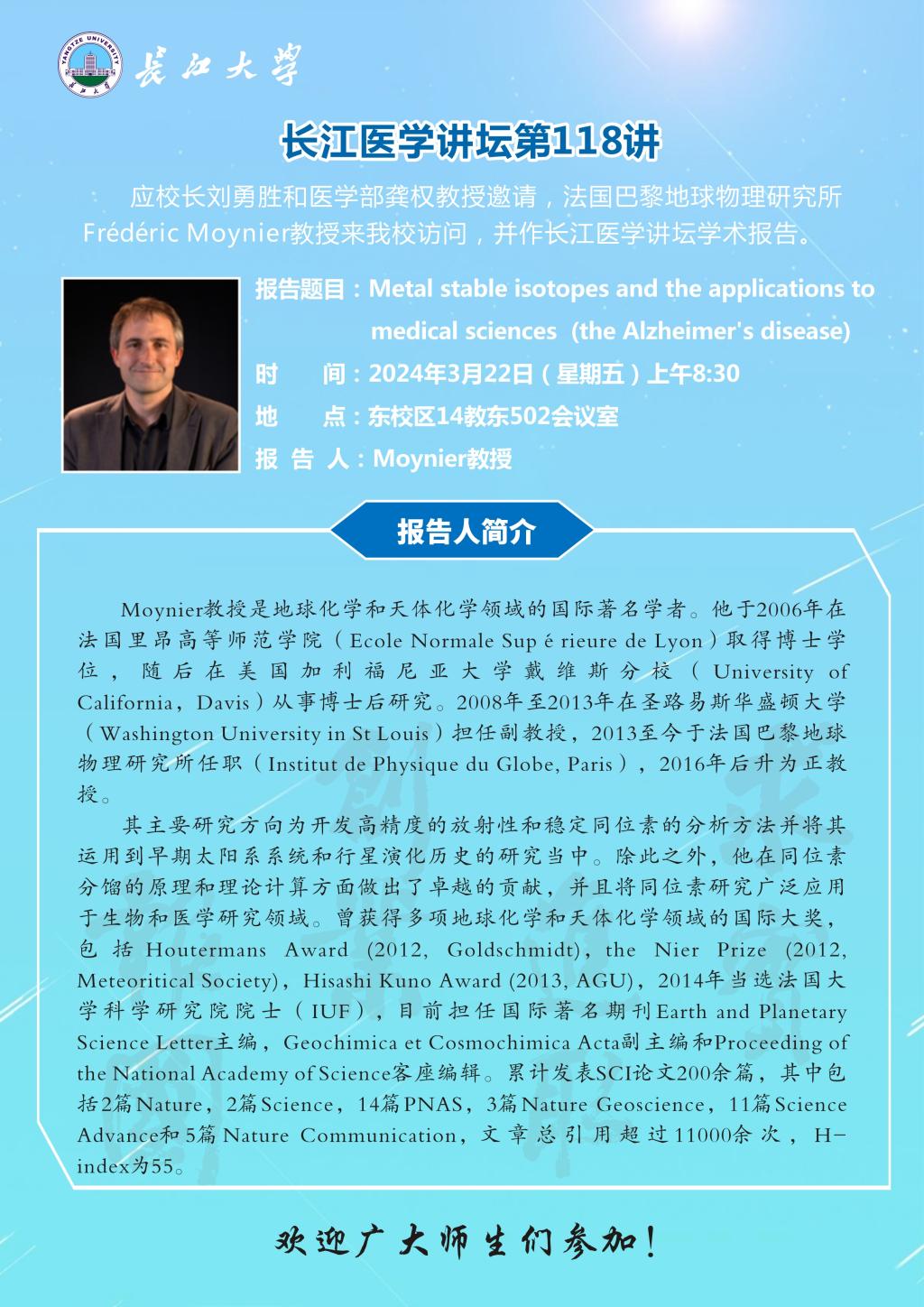 长江医学讲坛第118讲 Metal stable isotopes and the applications to medical sciences(the Alzheimer's disease)