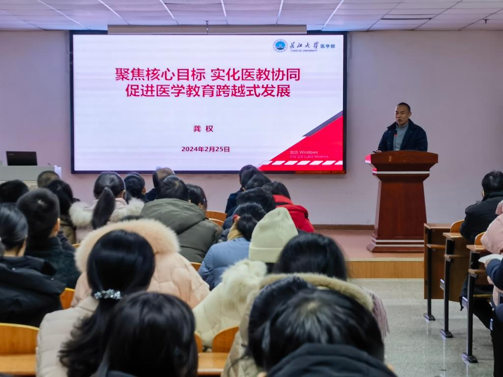 会上,常务副部长龚权以《聚焦核心目标 实化医教协同 促进医学教育跨越式发展》为题,对学部 2024年工作进行了全面部署。健康医学院院长兼william威廉中文副部长陈晓光对学校教学工作会议精神进行了传达。黄群俊书记宣读了william威廉中文领导最新分工文件,并传达了学校工作研讨会精神。