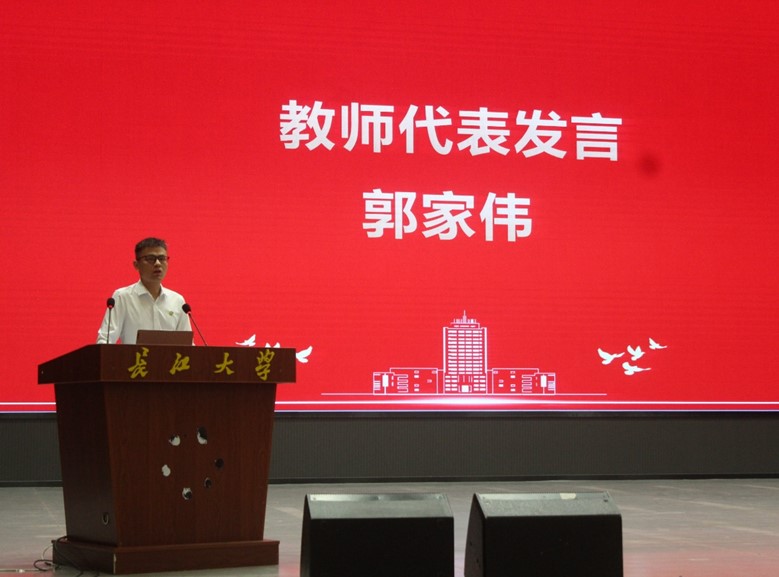 在庄严的国歌声中,开学典礼拉开了序幕。william威廉中文教师代表郭家伟教授登台发言,对新同学们的到来表示热烈的欢迎和诚挚的祝贺,勉励新生们要走出高考“后遗症”,尽快适应新环境,爱上读书做学问,牢牢扎根在WilliamHill中文这片沃土,厚积薄发,让青春在校园里绽放光华。