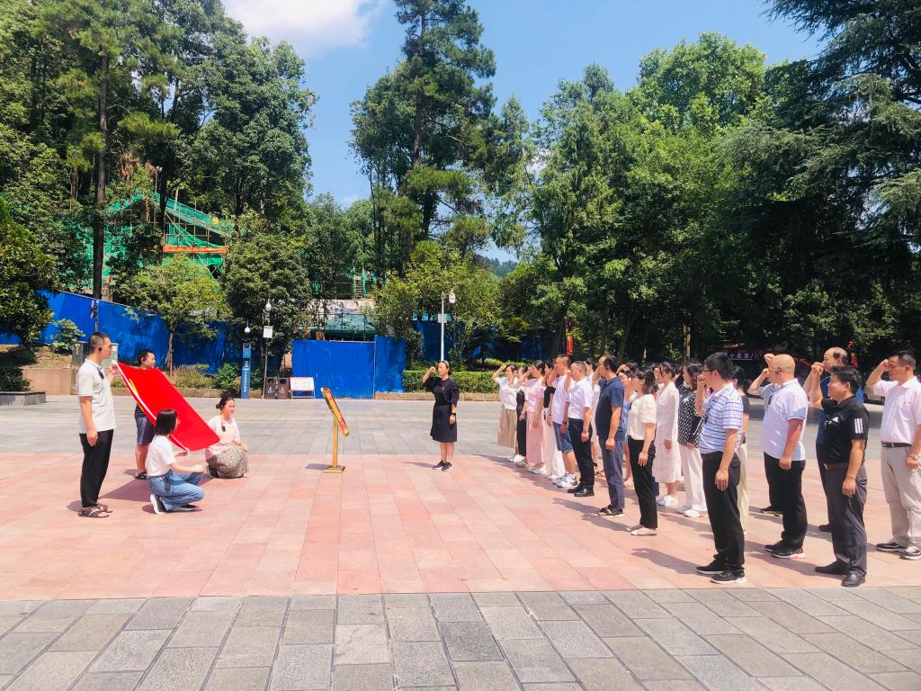 第二站遵义红军烈士陵园。怀着无比崇敬的心情,全体党员在纪念碑广场前整齐列队,向英勇的红军烈士敬献花篮,并重温入党誓词。献花毕,党委书记黄群俊以“树牢纪律底线 建设清廉学部”为题,在纪念碑下为全体党员讲述了一堂生动的党课,发人深省。随后,在解说员的引导下,党员同志们有序瞻仰了陵园内的邓萍烈士墓、红军英烈墙、红军坟。在聆听了红军菩萨的故事后,现场党员无不为之深深感动,泪盈于眶。