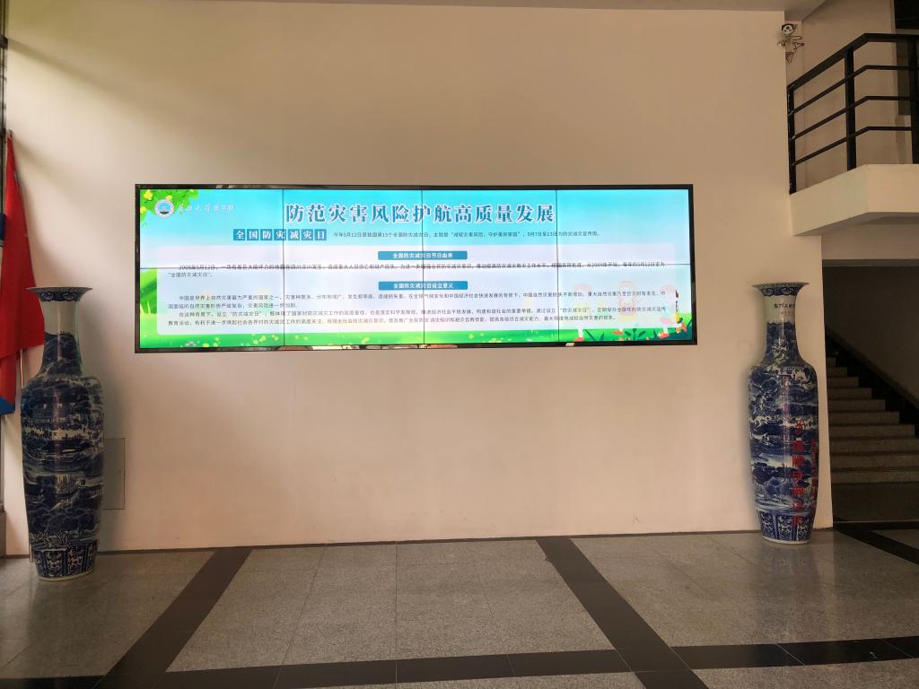 14号教学楼前的电子屏幕上,防灾减灾标语清晰醒目。屏幕上,详细地介绍了全国防灾减灾日的由来及设立意义,吸引来往师生驻足观看。