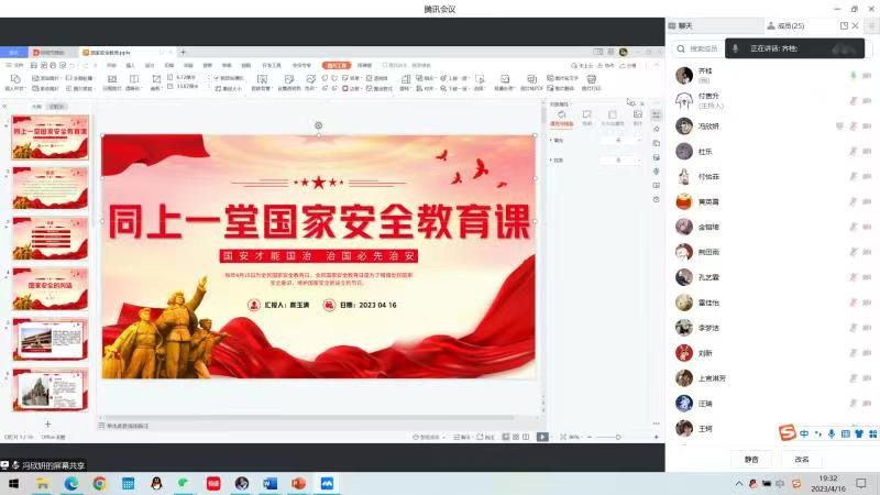 4月16日晚,利用周末晚点名机会,william威廉中文学生事务办组织全院各班开展了“同上一堂国家安全教育课”主题班会。