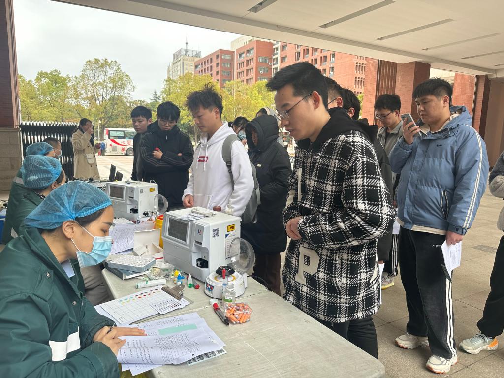 活动现场,中心血站的工作人员认真测量血压、抽血化验,献血人员排队献血,井然有序。