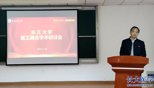 发展规划处处长白宗新代表学校致辞。他指出:党的二十大报告提出“加强基础学科、新兴学科、交叉学科建设,加快建设中国特色、世界一流的大学和优势学科”,为医学教育和学科发展指明了方向。本次医工融合学术研讨会恰逢其时、十分必要,对进一步促进“医学+”学科交叉、融合发展探索了良好路径。
