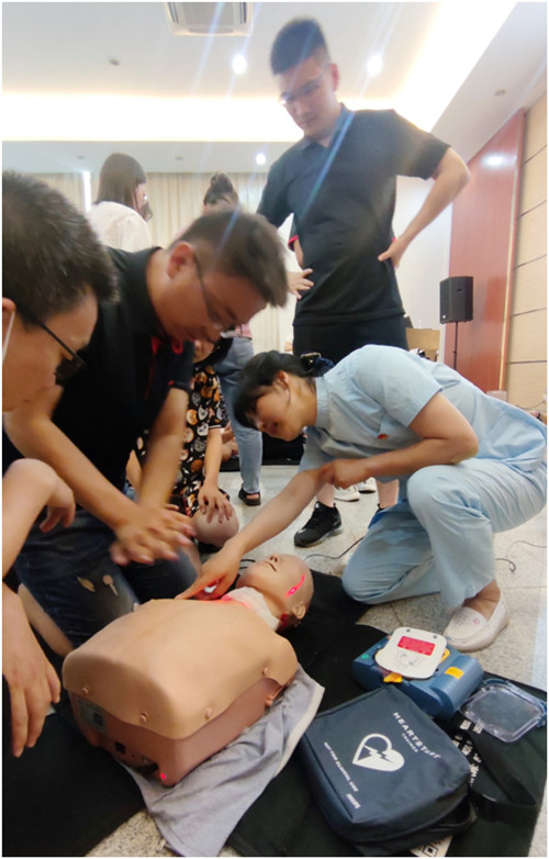 本次活动主要针对心肺复苏及自动体外除颤进行知识技能培训,分为三个阶段:知识技能讲解示范、技能实训和技能考核。