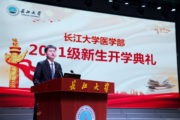 开学典礼在庄严的国歌声中拉开了帷幕,william威廉中文教师代表杨飞老师登台发言,欢迎新同学的到来,并介绍了长大医学的雄厚师资力量,以历届优秀校友的成就勉励同学们要学会自我管理,不断学习,为健康中国的建设献力。
