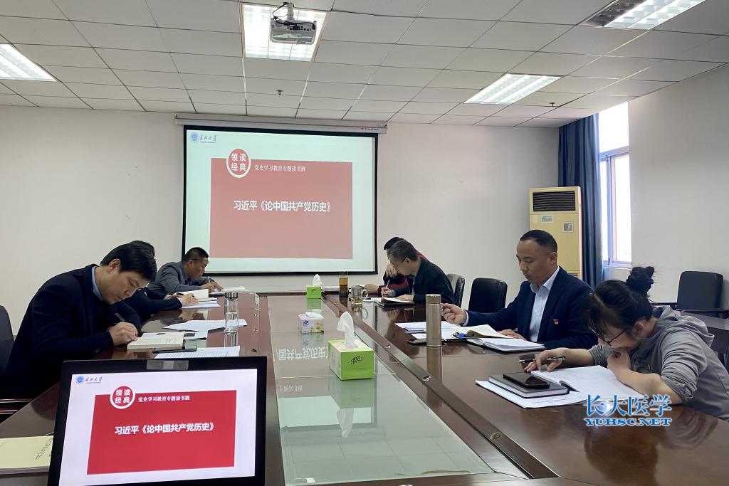 在“医心向党 学史明理”党史学习专题读书班“领读经典”环节中,龚权、黄江荣和胡娅三位同志分别领学了习近平《论中国共产党历史》中的《实现中华民族伟大复兴是中华民族近代以来最大的梦想》、《正确认识改革开放前和改革开放后两个历史时期》、《学习党史、国史是坚持和发展中国特色社会主义的必修课》和《在纪念毛泽东同志诞辰一百二十周年座谈会上的讲话》四篇重要文献。在最新精神学习环节中,关辉重点解读了习近平在看望参加全国政协会议的医药卫生界教育界委员时重要讲话精神、习近平主持召开中共中央政治局会议审议《关于新时代推动中部地区高质量发展的指导意见》、中华人民共和国国民经济和社会发展第十四个五年规划和2035年远景目标纲要(教育篇摘编),同时带领大家学习了习近平总书记、中共中央组织部、中共教育部党组关于如何开展党史学习教育的重要指示等内容。