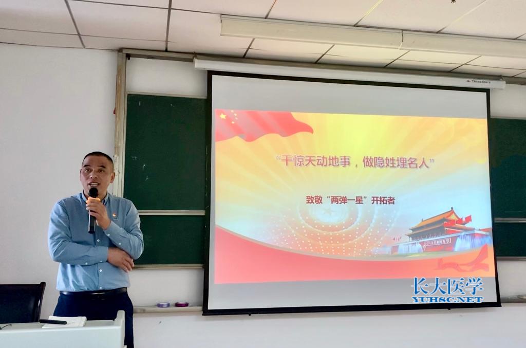 会议分为两项议程,首先,由张志超教授作“干惊天动地事,做隐姓埋名人——致敬‘两弹一星’开拓者”专题报告。张教授以时间为经线,以中国核工业的发展历程和一代代核工业人感人至深的真实事迹为主线,饱含深情地讲述了中国核工业人秉承“为中国人民谋幸福,为中华民族谋复兴”的初心和使命,在极其艰苦环境下克服困难,最终成功研制“两弹一星”,并在新时代努力实现跨越发展,续写核工业辉煌篇章的奋斗故事,并重点阐述了“热爱祖国、无私奉献,自力更生、艰苦奋斗,大力协同、勇于登攀”二十四字“两弹一星”精神的深刻内涵。