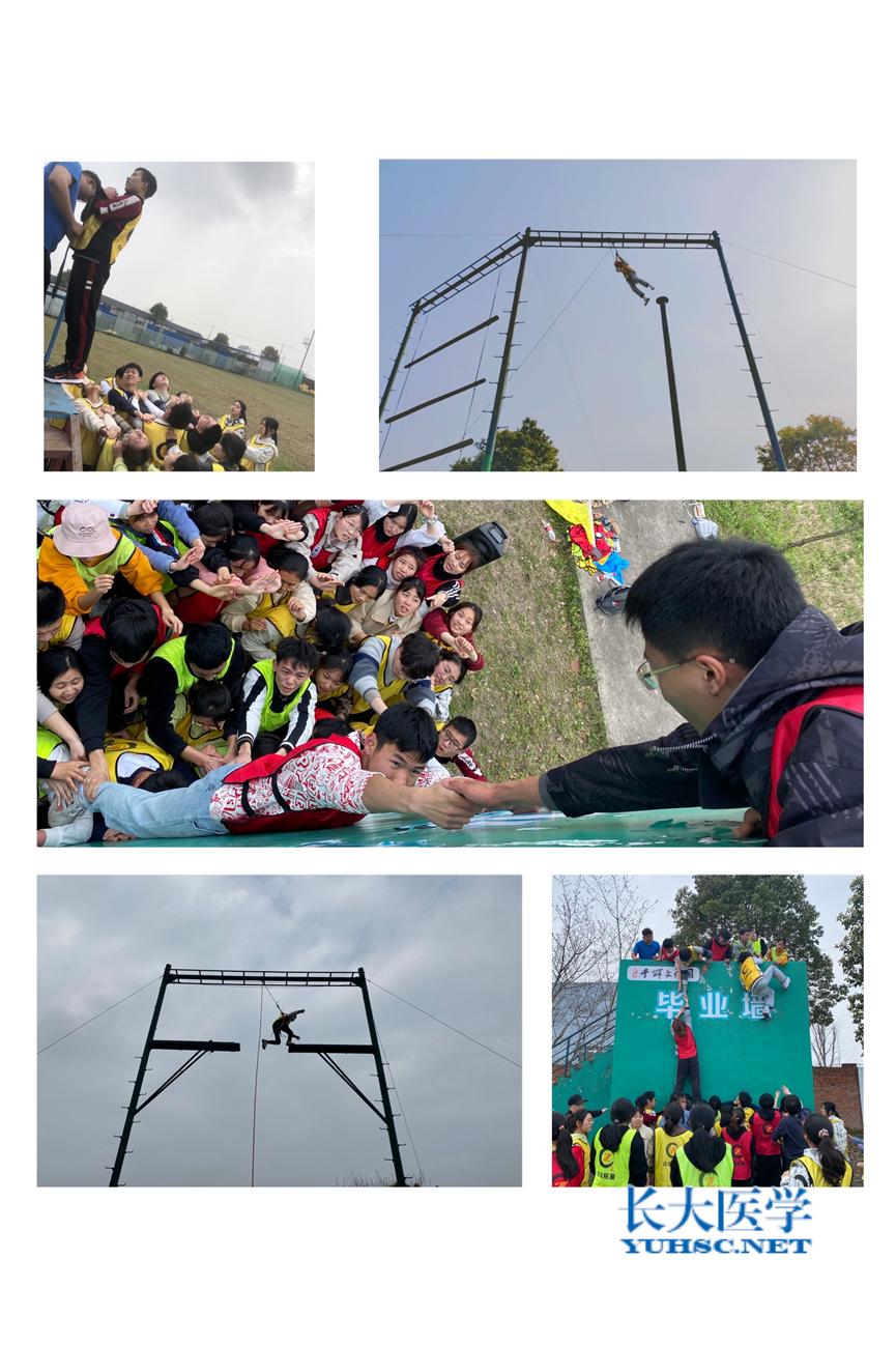 一路上同学们欢歌笑语、情绪高涨。在到达目的后,大家先做了热身游戏,然后设计了队名、制定了口号、选定了队歌完成了初步团队建设任务。伴随着响亮的口号声和队歌声,在相互信任、共同协作和紧密配合下,圆满地完成上午的训练任务。活动当天下午,同学们与老师们共同合作完成了信任背摔、高空断桥、高空抓杠、攀跃毕业墙等户外游戏。每一次挑战都是对自我的一次超越,无论成功与否,同学们都踊跃参与,互帮互助,勇往直前,在一次又一次地挑战中挖掘自身潜能,在一次又一次地挑战中不断成长。