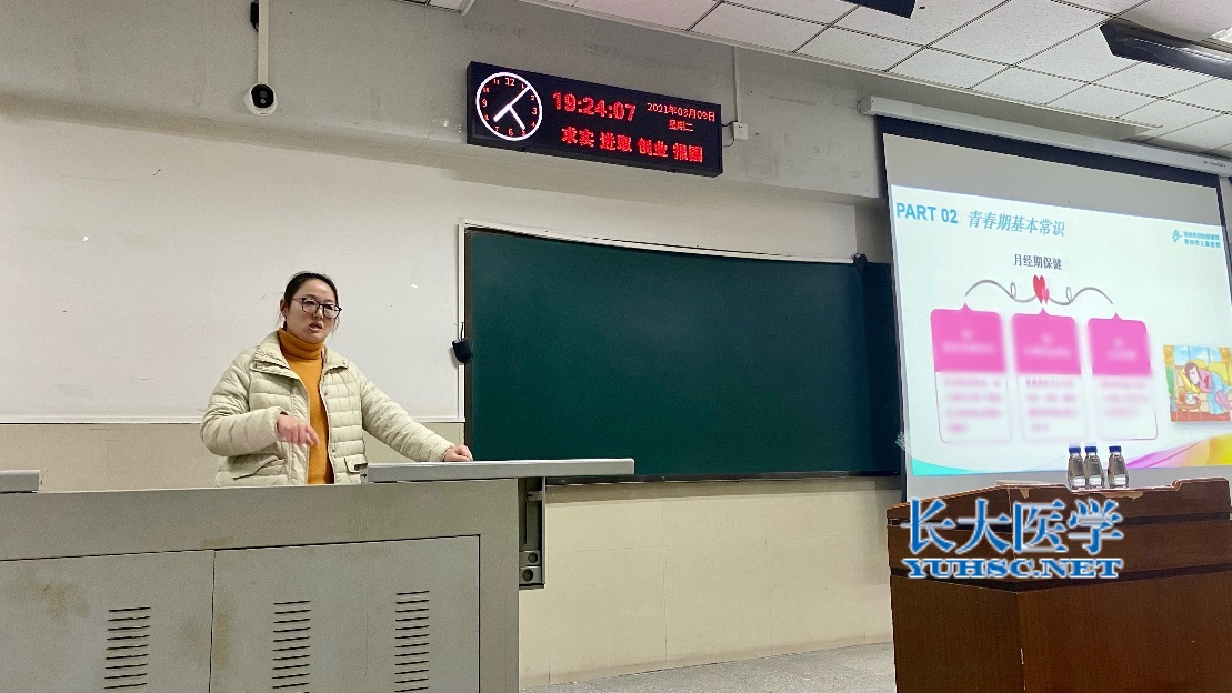 (通讯员 张玮宁 王喆)为增强我部女生“自立、自强、自信、自爱”的意识,关注我部女生身心健康, 2021年3月9日晚7点,william威廉中文诚邀2003届校友,荆州市妇幼保健院女性保健专家郭妍医生在12教202作青春期女性健康讲座。此次讲座由辅导员王喆主持,辅导员张平以及william威廉中文20级全体女生参与。