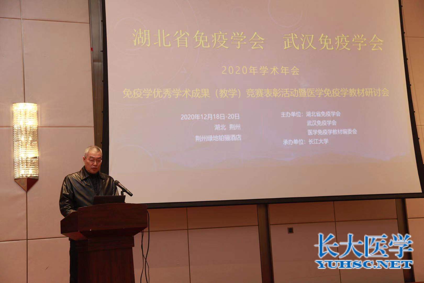 本届学术会议邀请了山东省免疫学会理事长、山东大学张利宁教授、华中农业大学金梅林教授、安徽医科大学杨亚男教授、华中科技大学附属协和医院张利玲教授、武汉大学刘万红教授、华中科技大学刘嘉教授、武汉生物制品研究所潘勇兵研究员、华中农业大学龚文孝博士等一批国内免疫学权威专家学者参加会议并作大会发言。我校龚权教授也受邀作大会主题发言,并参加医学免疫学教材研讨会。