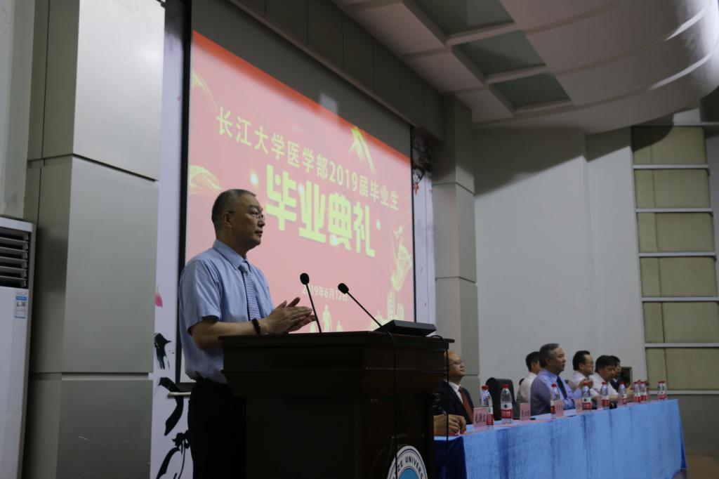 校长冯征发表重要讲话,对顺利完成学业的437名本科生、56名国内研究生和19名外籍研究生表示热烈祝贺,对辛勤培育他们成长成才的全体老师表示衷心感谢。他希望同学们面对国内复杂的医疗环境,坚定立场、立志成才、严于律己、刻苦而扎实地前行。临别之际,冯校长对即将踏入社会的毕业生悉心叮嘱,送给同学们三点期望:第一,永怀医者之心。秉持救死扶伤的精神,常怀仁爱之心,实施仁慈之术;第二,永遵医学之道。面对复杂的临床病症,精益求精,勇于创新,敢于创新,善于创新,成为医学健康领域的领跑者。第三,永记医生之本。要用“大我”情怀去追寻意义,引领人生新高度。最后,冯校长深情寄语,母校将继续关注和支持同学们,永远为同学们遮风挡雨,做同学们永远的温馨港湾,并祝同学们一生顺遂,健康幸福美满!