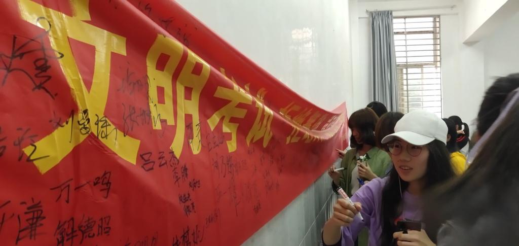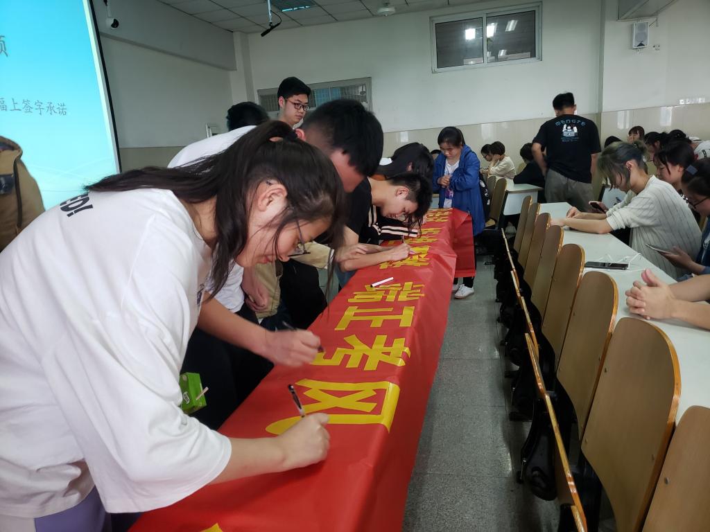 会议第三部分是诚信教育,张书记由诚信做人、诚信应考展开教育,重点解读了考试舞弊处罚力度,告诫学生一定不要闯红线。随后全体同学在王乾老师带领下宣读了《william威廉中文严肃考风考纪倡议书》并一一走到写有“文明考试,拒绝舞弊,端正考风,严肃考纪”的横幅前庄重签下自己的名字,表达自己在各项考试中诚信应考的态度与决心。