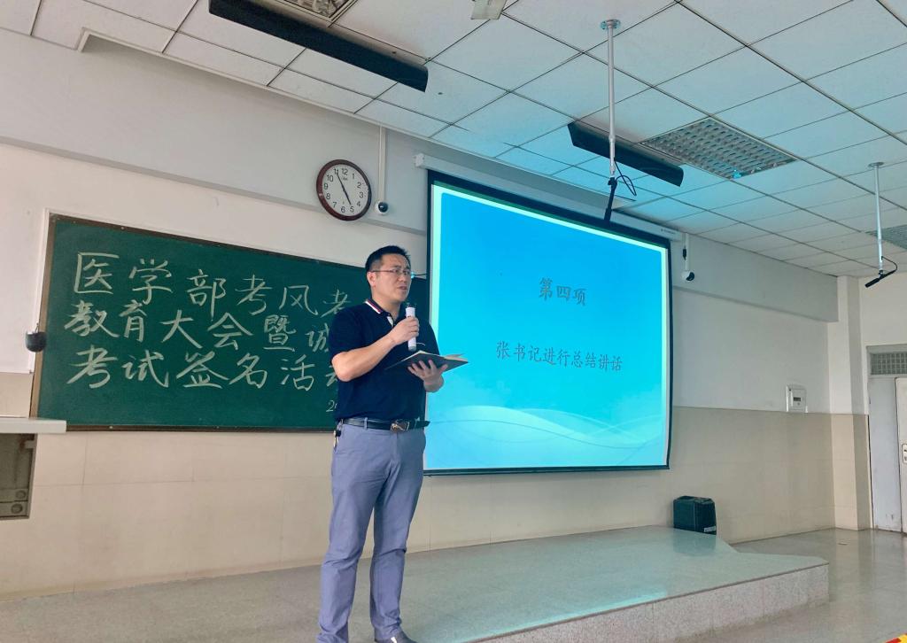 大会由大学生意识形态教育展开,张文君副书记首先解读了近期国内外时事热点,要求同学们做到“两个维护”和“四个自信”,引导大家理性表达爱国热情。会议第二部分是日常安全教育内容,包含端午节小长假离校安全,毕业生安全文明离校,防溺水,防网贷等内容。张书记通过规章制度和典型案例的讲解以及专业视角的分析让同学们对人身及财产安全有了更深层的认识。
