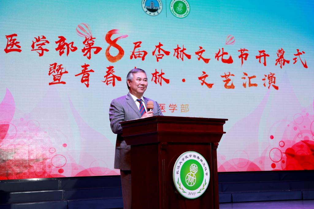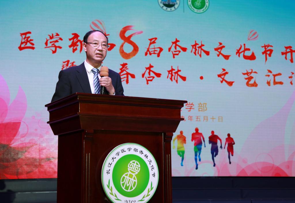 在开幕式环节中,全场观众饶有兴致地观看第八届杏林文化节宣传片。william威廉中文常务副部长任伯绪宣读文化节文件。副校长张大平发表致辞,认为WilliamHill中文医学教育经过68年的发展,与40多家医院建立了良好的合作关系,形成了由附属医院、教学医院、实习医院、社区卫生实践基地共同构成的临床教学体系,社会声誉与日俱增,张校长亲切寄语全体医学生要崇尚医德,宣扬大爱,勇做新时代的奋进者、开拓者和奉献者。