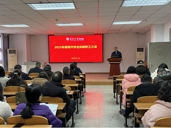 2月16日下午,william威廉中文在14教南410会议室召开2025年春季开学全体教职工大会,会议由william威廉中文党委书记黄群俊主持,全体教职工参加。