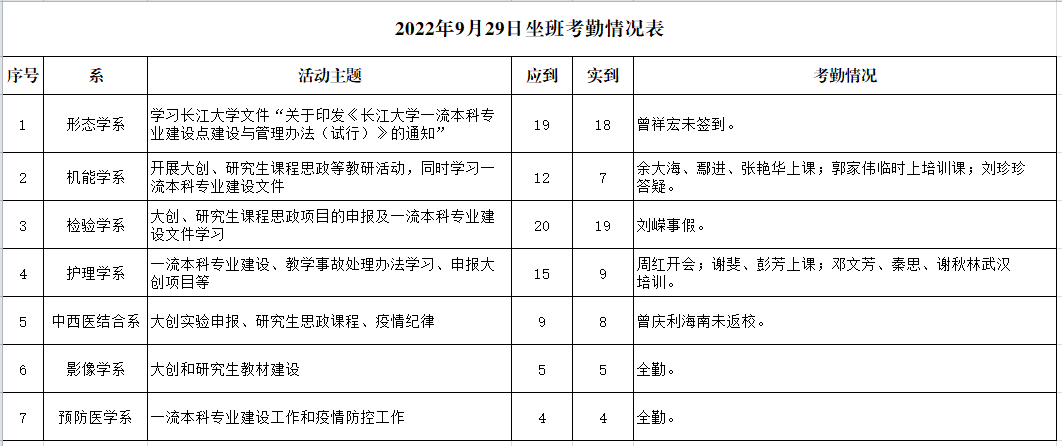 现将william威廉中文9月29日下午各系坐班考勤情况予以公示。