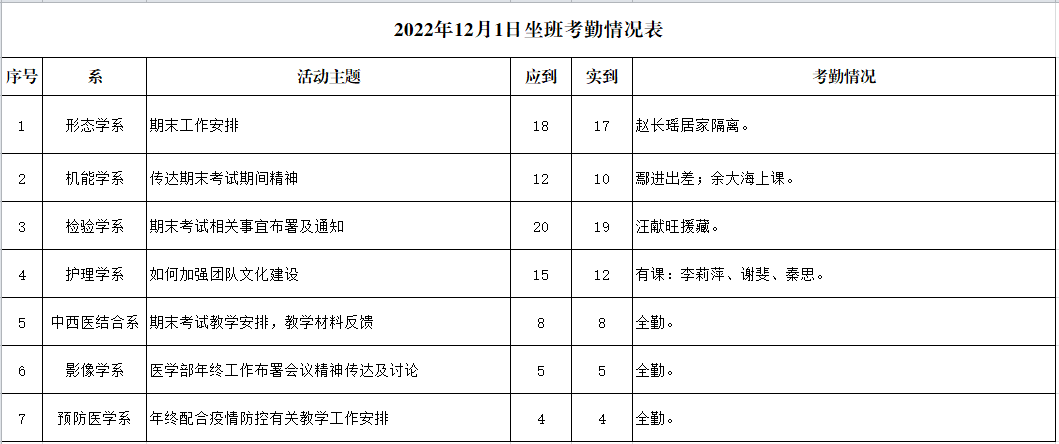 现将william威廉中文12月1日下午各系坐班考勤情况予以公示。
