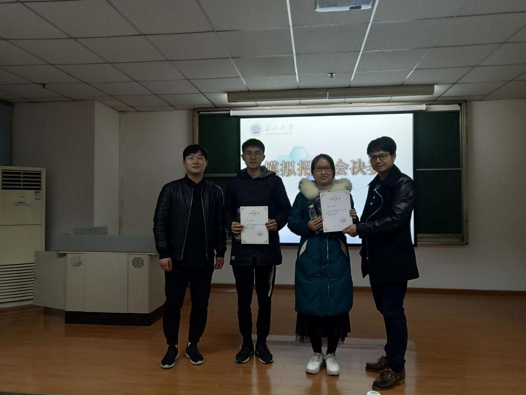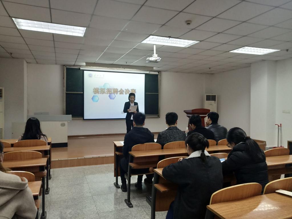 活动伊始,主持人介绍比赛流程和规则,随后,五位参赛者通过自制PPT或视频资料做自我介绍并阐明求职意向,每个参赛者都从不同的角度阐述出自己求职的意向,后由评委老师对应聘同学提出综合性问题以及建议,参赛者也从中找到自己的优点,发现自己的缺点。然后,张昊老师对此次的招聘会做总结,主要强调以下四点:第一,参赛者要明确自己的应聘单位以及应聘的目的。第二,介绍学校和单位,强调学校优势和专业特色。第三,参赛者可以谈一谈自己对专业的理解,学习成绩,以及在科研和实习方面的成就。第四,介绍自己社团干部的经历,对单位的了解。最后,由主持人王琨公布五位同学的获奖情况,由评委老师对获奖者进行颁奖。