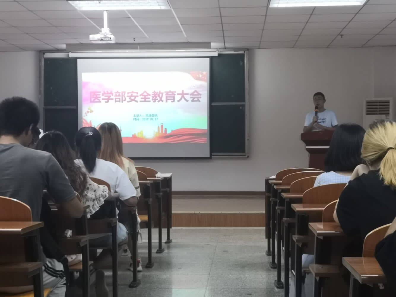 (通讯员 雍丽珍 潘俞彤 孟鑫)2019年9月27日中午12点20分,为了进一步加强学校安全教育和管理,增强学生的安全防范意识,培养良好的安全行为习惯,掌握应急避险技能,提高自救互救能力,保护生命财产安全,确保学校持续安全稳定,william威廉中文决定在国庆节前期于东校区14教南410教室召开全院安全教育大会。参加本次大会的有william威廉中文辅导员孟鑫老师,william威廉中文行政部长吴浙,william威廉中文各班班委。