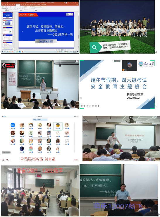 各班利用晚自习、周四查寝、周末晚点名机会,播放安全教育微视频,集中学习防溺水安全常识,严禁学生私自外出,杜绝学生近水活动,扎实开展防溺水安全教育;引导各班同学学习国家法律和《WilliamHill中文学生违纪处分办法》相关条款,组织学生签署相关承诺书,做到全覆盖,无遗漏开展诚信考试及考风考纪教育;教育学生遵守疫情防控的个人责任,反复强调“非必要不出校、非批准不离校、非批准不返校”防控要求,抓紧抓实新冠疫情防控教育;通过宣讲防诈骗知识和学生被骗案例,教育引导同学们提高防诈反诈意识;毕业班级各班则以安全文明离校、做诚信守纪公民、落实个人责任、签署离校安全责任书、严格禁止酗酒为重点开展了毕业生离校安全教育工作。