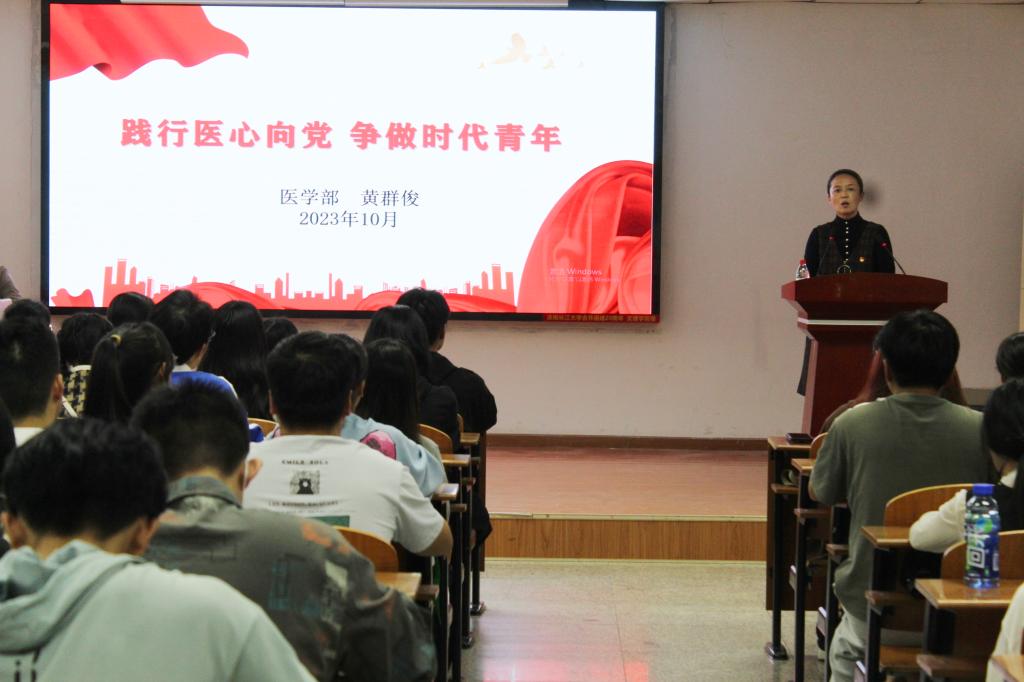 (通讯员:王舒焜 王乾)为切实加强入党积极分子的培养教育,确保发展党员质量,提高入党积极分子的思想政治素质。william威廉中文于2023年10月29日14时召开了主题为“践行医心向党 争做时代青年”的入党积极分子培训报告会暨书记讲党课,主讲人为william威廉中文党委书记黄群俊,2023年下半年新确定的入党积极分子参加报告会。