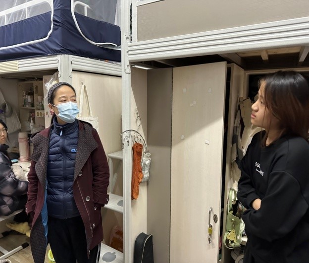 突击检查中,大部分学生宿舍桌面床铺整洁,空气流畅,没有发现大功率电器使用情况,无其他明显安全隐患。黄书记、张书记关切的询问同学们的学习生活情况,还在交谈中热情的解答同学们提出的各种疑惑,为他们排忧解难,鼓励他们以更饱满的热情投入到学习中、生活中。