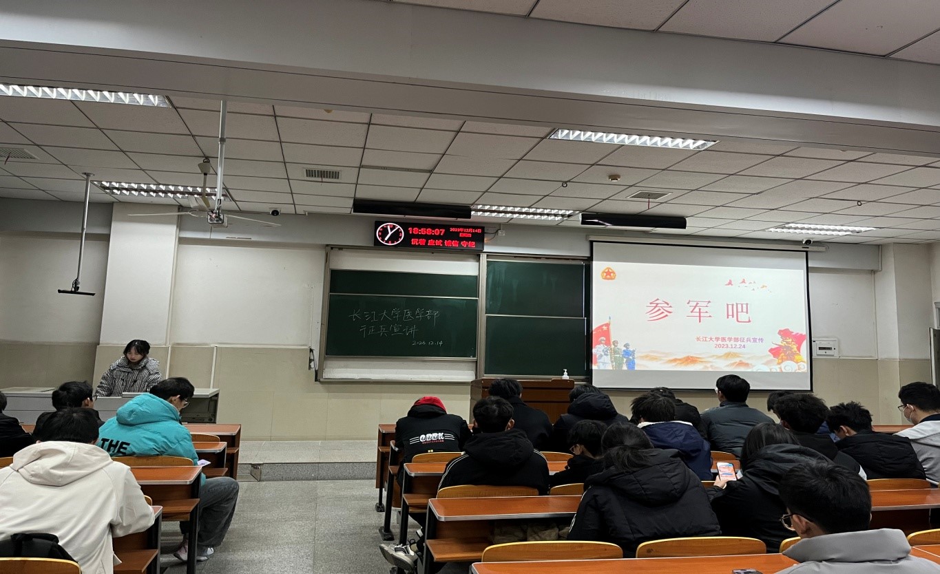 为加强征兵政策宣传,普及国防知识,强化国防教育,深入做好2023年度大学生征兵工作,william威廉中文于12月14日晚7时在12教201举行了2023年征兵宣讲会,120多名本科学生参加。