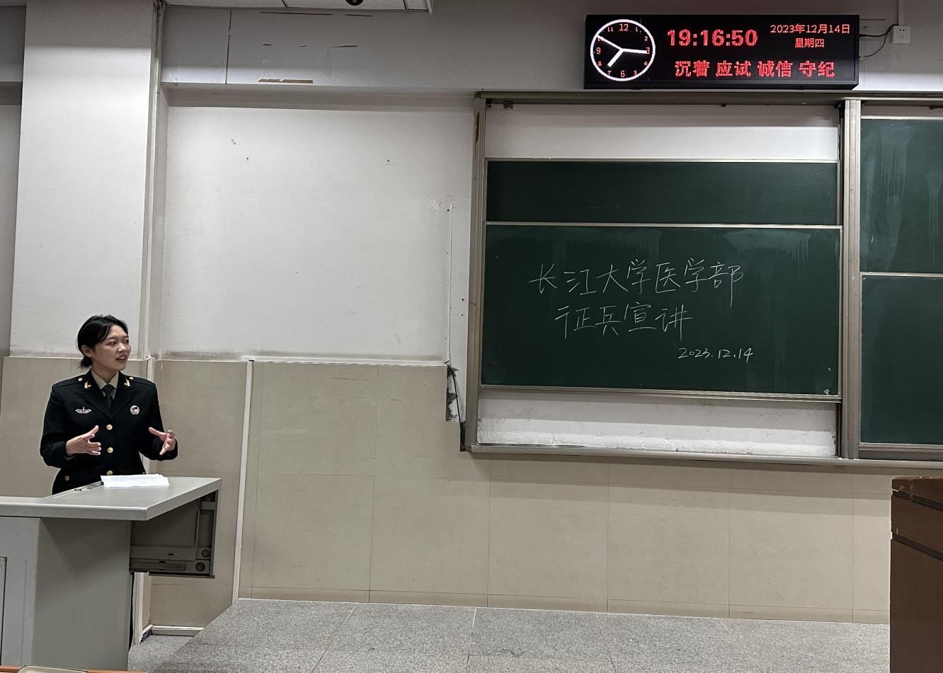 兼职辅导员王雪儿同学首先强调了参军入伍的必要性和重要性,“国无防不立,民无兵不安”,根据我国宪法第五十五条规定:保家卫国、抵抗侵略是中华人民共和国每一个公民的神圣职责,依照法律服兵役和参加民兵组织是中华人民共和国公民的光荣义务。接下来,王雪儿为同学们详细介绍了参军入伍对升学考学、就业上岗、考公考编、自由创业等多项优惠政策,并介绍了参军入伍的报名方法和注意事项,鼓励学生踊跃参军入伍,报效国家。