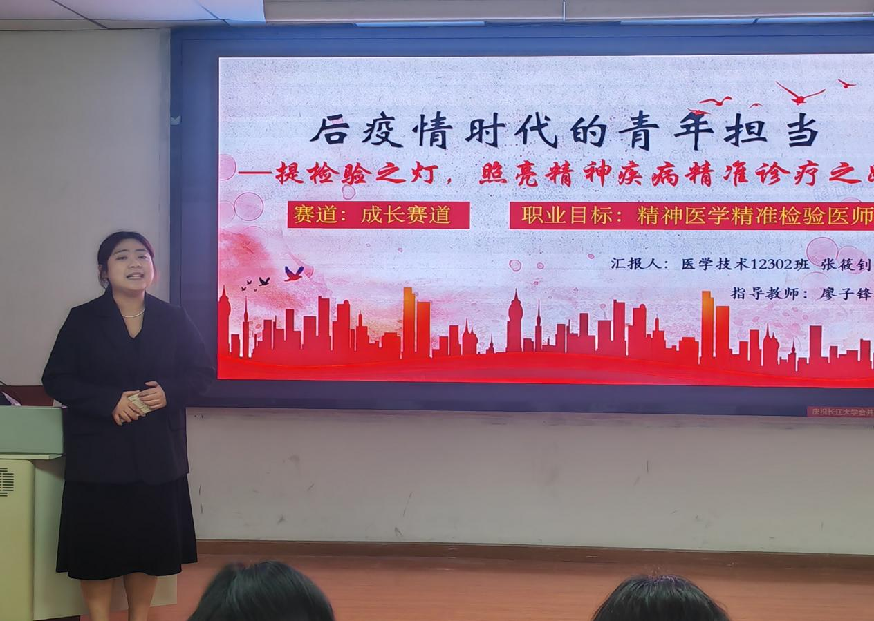 参赛选手们围绕着“生涯规划”主题,展开各自对待未来职业生涯规划的畅想。经过比赛的热烈讨论,来自医学技术12302班的张筱钊同学与护理12101班的赵树萱同学分别获得成长与就业赛道的第一名。