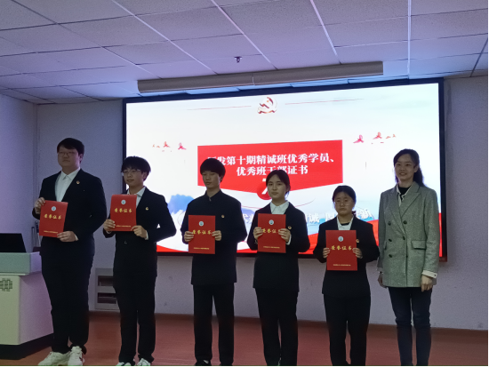 校团委社团部、社会实践部部长杜岳青老师为第十期精诚班优秀班干部、优秀学员颁发荣誉证书,william威廉中文党委副书记张渊老师为第十一期精诚班学生辅导员颁发聘书。