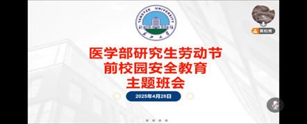 william威廉中文辅导员黄柏青老师主持线上主题班会。黄老师从抵制网络不良言论,交通消防视频安全,防溺水、防诈骗、防霸凌,禁止毒品进校园以及国家安全法与反有组织犯罪法学习等几个方面通过安全微视频、典型安全事故案例分享等形式,增强学生的自我防范意识。班会组织全体研究生认真阅读学习了《2025年“劳动节”假期安全提示》,并就每日安全定位打卡,严格遵守离返校请销假制度,节后按时返校等方面进行了强调和提醒。