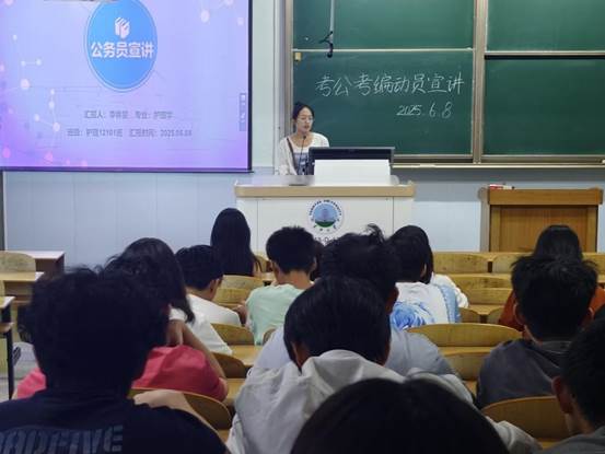 宣讲会上,李林斐结合自身备考经验,从考试政策、备考策略、岗位选择等多个方面进行详细讲解。她特别强调“选择公务员岗位需谨慎规划,要根据自身情况选择学习方式和考试策略”。