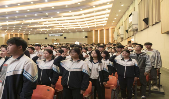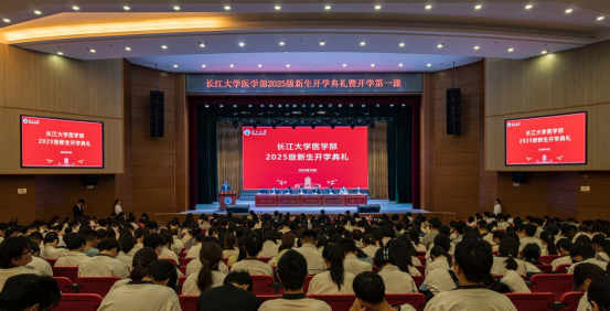 伴随着庄严的中华人民共和国国歌,典礼正式拉开帷幕。全体师生肃立,嘹亮的歌声回荡在礼堂,爱国情怀与医者初心在这一刻悄然共鸣。