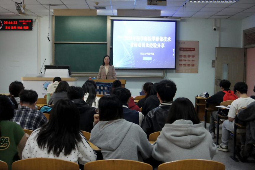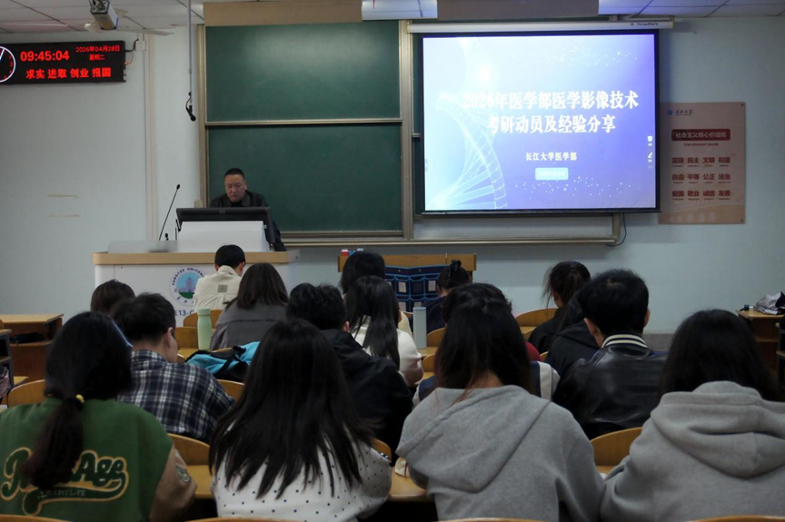 (通讯员:刘凤珍 夏鹏)为明晰考研方向、优化备考策略、拓宽升学与职业发展路径,4月28日上午,william威廉中文在13教C216教室举办影像专业考研经验分享会,医学影像技术专业杨群老师和该专业23级同学们参与分享会。就业专干夏鹏老师指出,当前医疗行业学历门槛不断提高、就业竞争日趋激烈,提升学历是医学生增强核心竞争力、实现高质量就业的重要路径。希望通过朋辈经验传承,为同学们理清备考思路、坚定考研信念。