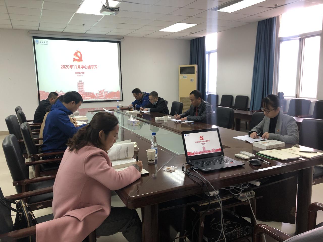 会上,全体中心组成员首先重温了入党誓词。在学习习近平新时代中国特色社会主义思想读书班“领读经典”环节中,陈晓光、曾盼和吴浙三位同志分别领学了《习近平谈治国理政》第三卷中的《继续完善党和国家机构职能体系》、《人民是我们党执政的最大底气》和《谱写人类反贫困历史新篇章》三篇重要文献。在时政学习环节中,关辉同志重点解读了习近平在中央党校(国家行政学院)中青年干部培训班开班式上的重要讲话精神、中国共产党第十九届中央委员会第五次全体会议精神,同时带领大家学习了中共中央办公厅印发《关于巩固深化“不忘初心、牢记使命”主题教育成果的意见》、教育部关于印发《高等学校课程思政建设指导纲要》的通知和中共湖北省委十一届七次全体会议精神。