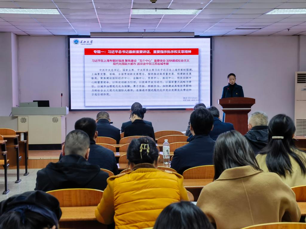 在统计票数期间,学部党委书记黄群俊带领全体教职工开展了12月政治理论学习。