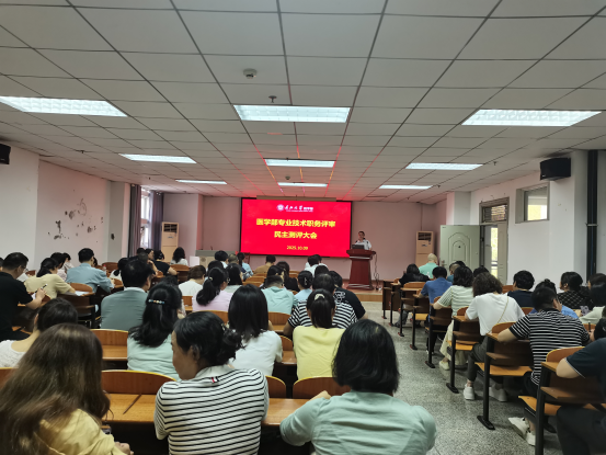 会议第一阶段组织开展2025年度专业技术职务评审民主测评工作。黄群俊书记就本年度职称申报政策、资格条件及申报人员基本情况作了详细说明。随后,申报职称教师依次进行述职汇报,全体与会教职工在听取述职后以无记名方式参与民主投票。会议现场统计并公布了投票结果,整个过程公开透明、程序规范。