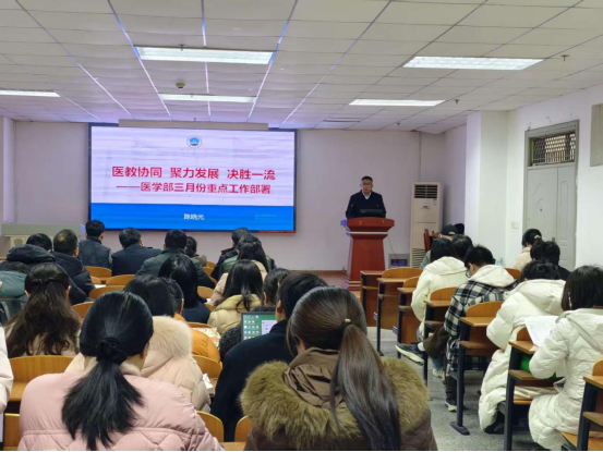接着,william威廉中文常务副部长陈晓光围绕 “医教协同 聚力发展 决胜一流”的主题,对学部3月份重点工作进行了详细部署。