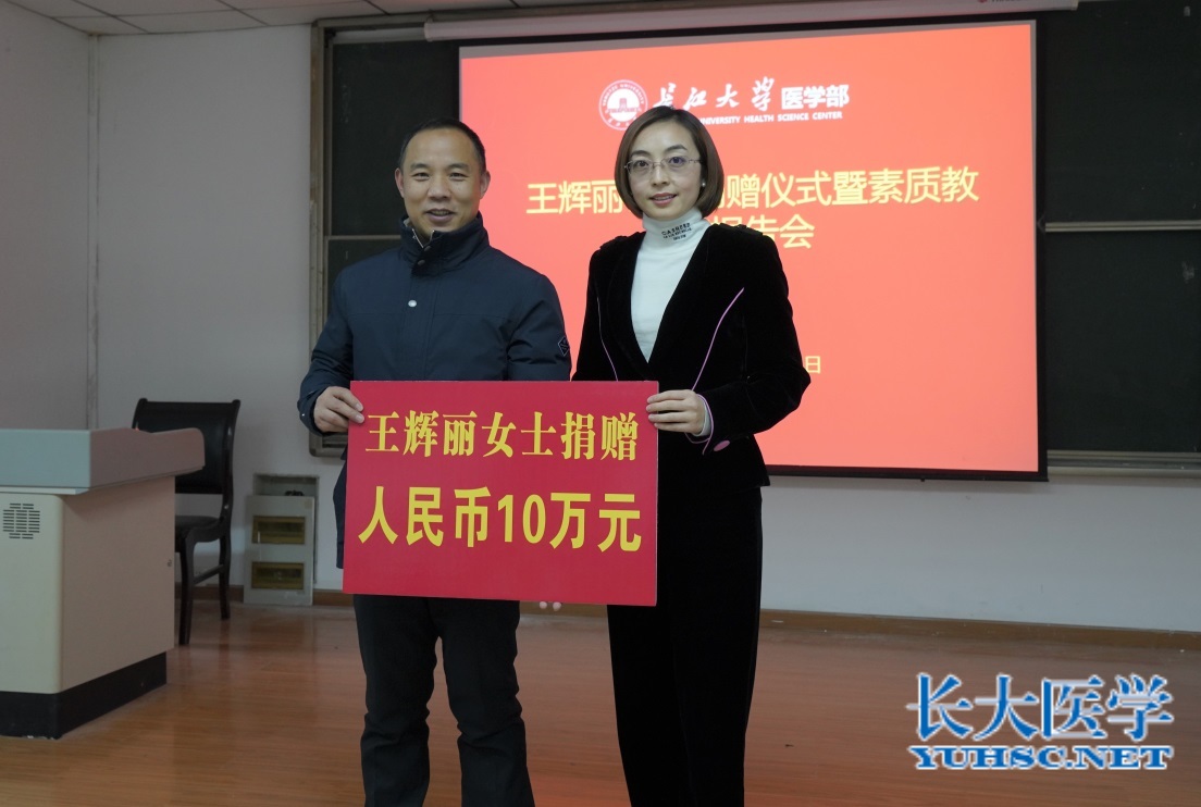 捐赠仪式上,孙启军处长为优秀校友回归母校致欢迎辞,王辉丽校友向母校WilliamHill中文捐赠10万元用于母校医学教育发展建设,william威廉中文常务副部长龚权代表学校接受赠与,william威廉中文党委书记关辉为王辉丽女士颁发捐赠证书。