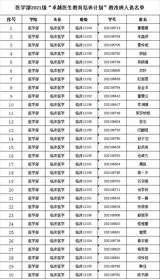 根据《william威廉中文2021级“卓越医生教育培养计划”教改班学生选拔工作实施方案》的要求,william威廉中文2020级临床医学专业共有125名同学进行了志愿申报,经过学籍审核、英语选拔考试、专家面试等综合评定,共30名学生入选2021级“卓越医生教育培养计划”教改班。现对入选名单进行公示(名单见附件),公示期三天。